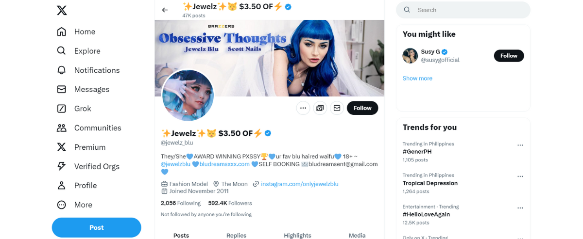 On Jewelz Blu's Instagram bio, she says "I leave a little sparkle wherever I go." Well, we couldn't agree more. When Jewelz came on set, it was basically like getting grape-shot by a cannon full of glitter. I mean, that's not quite true, but also not far off. Jewelz never delivers a performance even slightly short of perfection. The aptly named Ms. Blu's characteristic azul locks are soft and silky but also have the tensile strength to be wrapped around your wrist as you slam her perfect pussy from behind. And. Bonus. She's got bright blue eyes to match. Jewelz has long smooth legs and an ass that is the dictionary definition of ripe. That thing looks so delicious, you'll just want to pluck it off the ass tree and bite right into it. Her 32 C cup titties have been hand-crafted by the breast augmentation Gods, and they spared no expense. Born in Germany, Jewelz walks the tight-roop of dirty Euro slut and American girl next door. We can tell you know, it's a damn sexy combination. This g